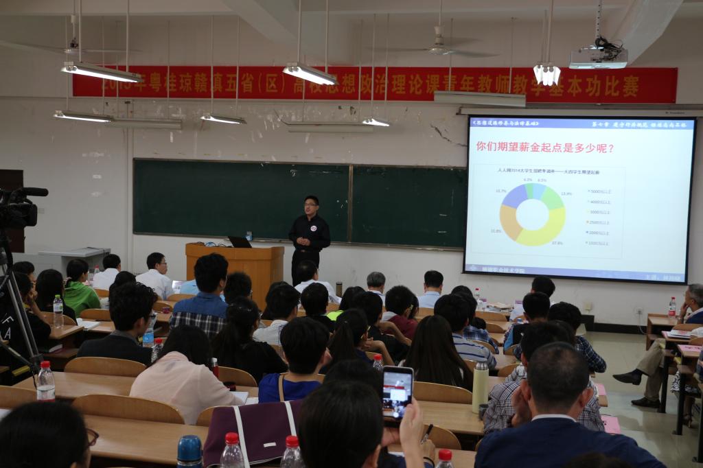 五省(区)联赛以省为单位组队,本科院校与高职院校思政课教师同台竞技。本次比赛由教育部高校人文社会科学研究中心主任王炳林教授担任评委组组长,武汉大学张乾元教授、南方医科大学李国兴教授、南昌大学胡伯项教授、海南师范大学王习明教授、云南财经大学阮金纯教授和广西师范大学副校长钟瑞添教授担任比赛评委。经过两天紧张激烈的比赛,共评选出5个一等奖、7个二等奖和8个三等奖。