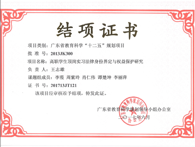马克思主义学院王志雄教授主持的广东省教育科学“十二五”规划项目顺利结项