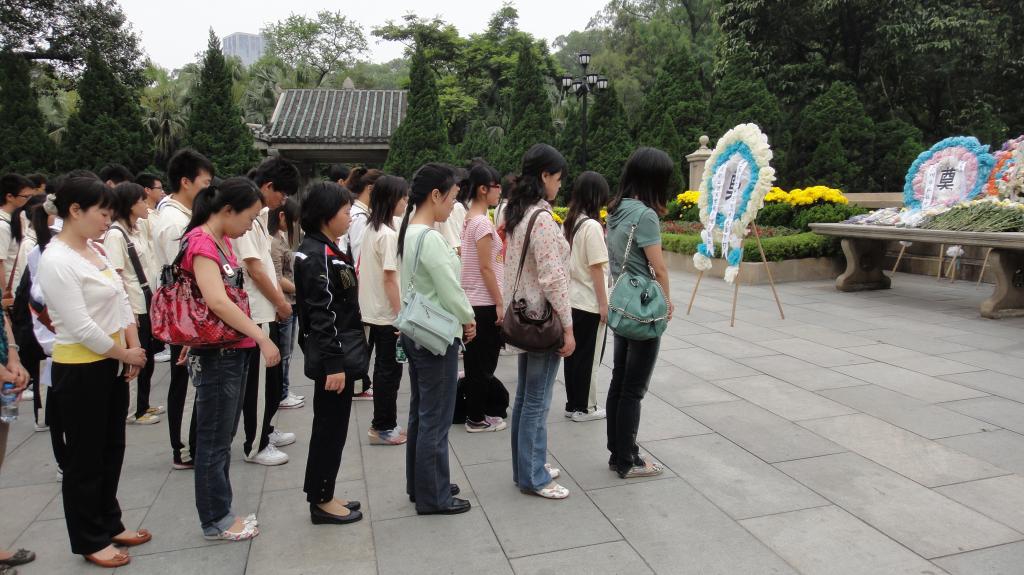首先,师生们来到黄花岗七十二烈士墓园。黄花岗七十二烈士墓园是为纪念1911年4月27日(农历辛亥三月二十九日)孙中山先生领导的“三·二九”起义中死难的烈士而建造,是广州作为近代革命策源地的重要见证。在气魄雄伟的黄花岗七十二烈士墓园前,同学们排着整齐的队伍,怀着凝重的心情为烈士献上花圈,默哀悼念以表达自己的缅怀之情。