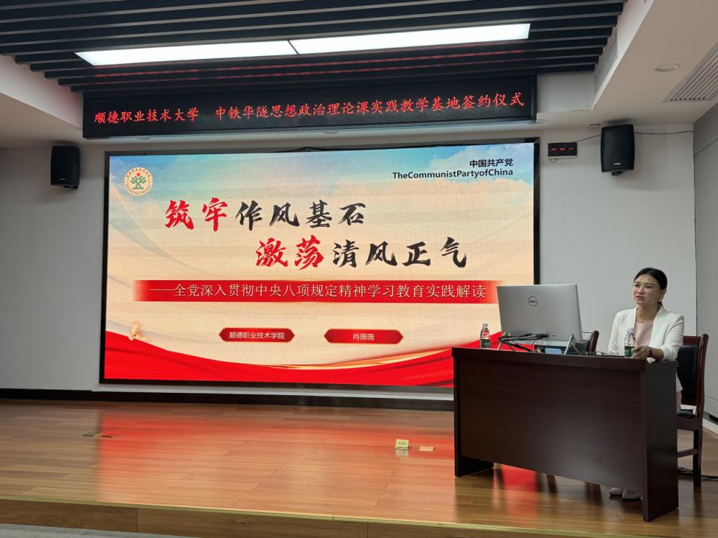 签约仪式后,为深入学习中央八项规定精神,中铁华隧集团特邀肖薇薇副院长作了题为“筑牢作风基石,激荡清风正气——全党深入贯彻中央八项规定精神学习教育实践解读”的主题讲座。肖院长从八项规定的“再回顾、再认识、再部署、再行动”四个方面,深入浅出地阐释了八项规定精神在马克思主义中的理论渊源,并指导党员干部如何将其转化为具体的实践行动,为全体与会人员带来了一场深刻的思想洗礼。