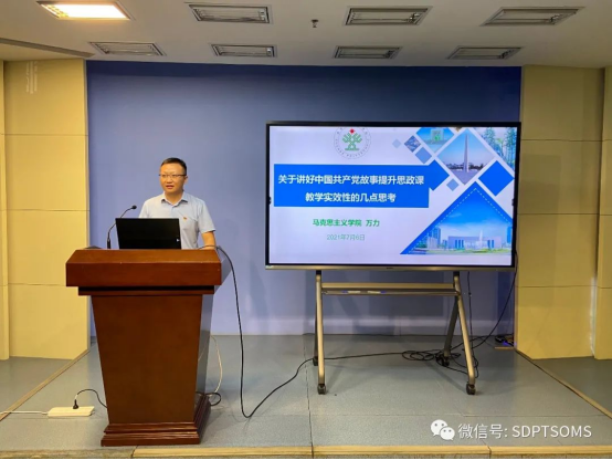 万力副教授以“关于讲好中国共产党故事提升思政课教学水平的几点思考”为题,从“为何讲”“讲什么”“怎么讲”三个维度探讨思政课如何讲好中国共产党故事。他认为,中国共产党故事既是思政课的重要内容,也是生动的历史素材,讲好中国共产党故事具有增强思政课政治性、提升思政课亲和力与针对性、搞好“四史”教育以及优化思政课教学方法与话语的重要意义。万力副教授结合自己的教学教研经验提出,讲好中国共产党故事要重点抓住“初心情感”“血肉形象”“雄辩事实”“硬核道理”等四个问题展开,运用正确的方式方法,坚持“宏叙事”与“微叙事”相结合、“教师讲”与“学生讲”相结合以及“抒情感”与“说道理”相结合,实现教学体系向价值体系、知识体系向信仰体系的转化,推动学生由思想认同、政治认同向情感认同逐步提升。