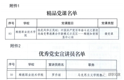 近日,中共广东省委教育工委公布了全省高校精品党课、优秀党史宣讲员评选结果,共评选出100部精品党课,60名优秀党史宣讲员,我院周紫玲副教授主讲的题为“恰是风华正茂时:中国共产党百年奋斗史之曾经沧海变粤港澳合作新模式示范区——顺德知青围垦中心沟”的微党课入选百部精品党课,我院罗乔丽老师入选优秀党史宣讲员。