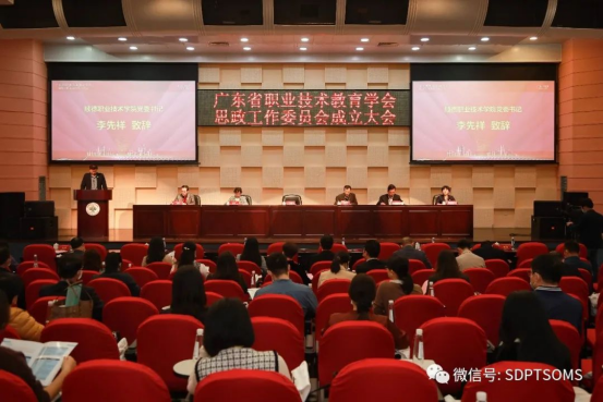 12月11日上午,广东省职业技术教育学会(以下简称“省职教学会”)思政工作委员会成立大会暨思政教育教学工作研讨会在我校召开。学校党委书记李先祥,省职教学会秘书长柯贞金,学校党委副书记、省职教学会思政工作委员会主任刘毓,东莞市商业学校党委副书记、校长曹永浩,阳江职业技术学院党委委员、副院长高进等省内18所中、高职院校代表参加活动。