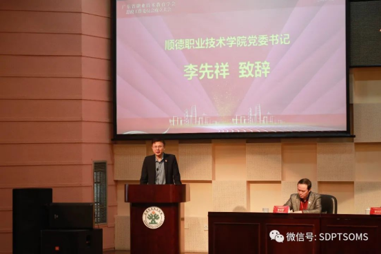 随后,成立大会在学校一号报告厅召开。李先祥代表学校党委对省职教学会长期以来对我校思政工作的大力支持表示衷心感谢,对兄弟院校领导、老师们的到来表示热烈欢迎。他介绍了我校的基本情况和思政工作情况,期盼思政工作委员会的成立为全省职业院校广大思政教育工作者开展思政教育理论研究、推进思政教育工作实践、打造思政教育品牌提供有力支撑,为推进全省高校思政学科建设、全面落实立德树人根本任务提供有力支撑。
