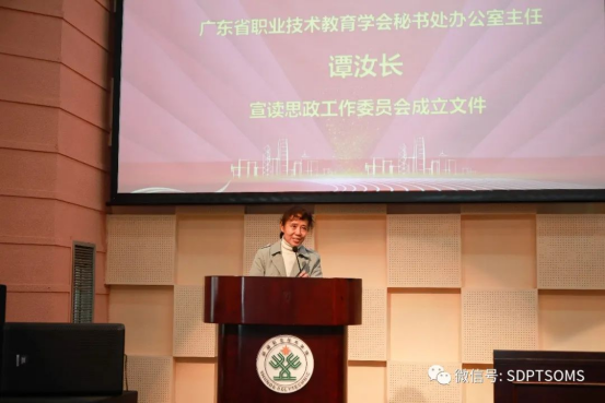 省职教学会秘书处办公室主任谭汝长宣读了《关于同意成立体育卫生艺术工作委员会等分支机构的通知》和思政工作委员会领导成员名单。