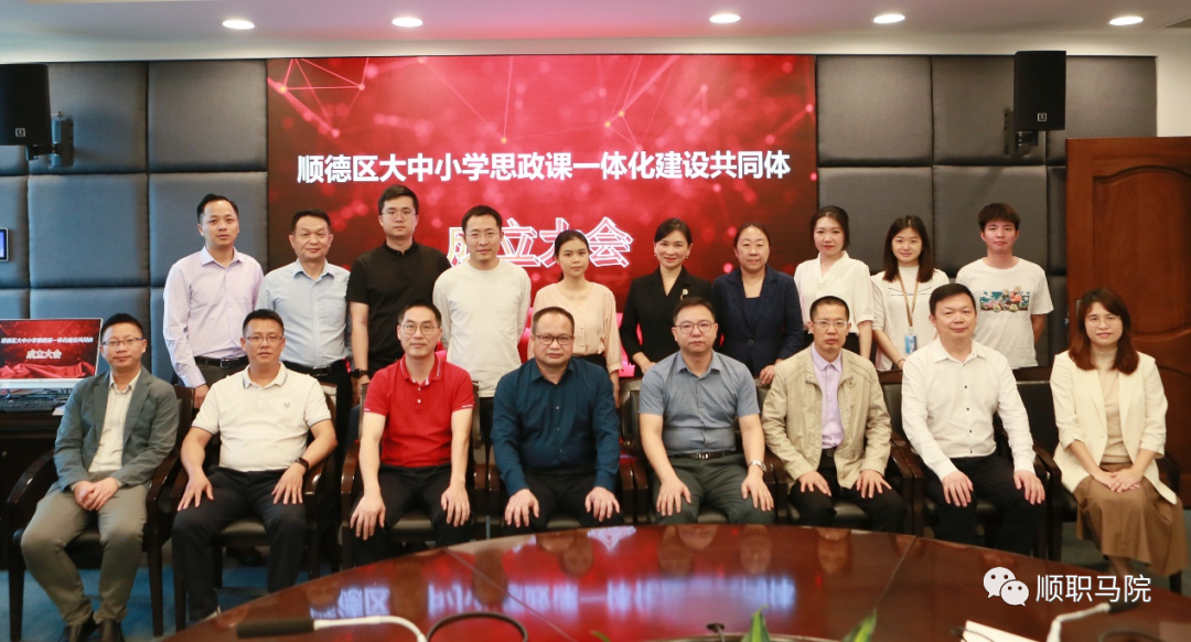 5月12日,顺德区大中小学思政课一体化建设共同体成立大会在顺德职业技术学院成功举办。来自顺德职业技术学院、顺德区第一中学、顺德区乐从中学、顺德区实验中学、胡宝星职业技术学校、顺德一中西南学校、顺德大良实验小学、顺德容桂上佳市小学等八所发起学校的代表参加了成立大会。