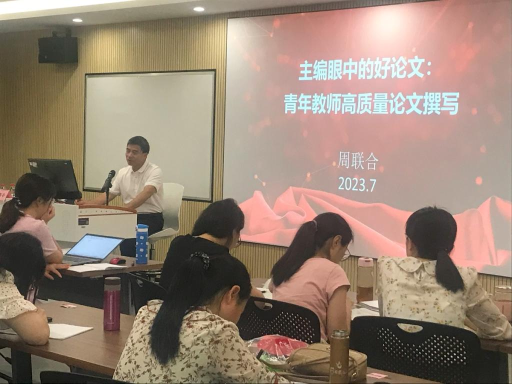 下午,培训邀请了广东省社会科学院法学研究员周联合博士作主题讲座。周联合博士研究范围涉及民商法、经济法,法律与政制史、法律与治理现代化等,担任《广东社会科学》副总编辑,他讲座以“主编眼中的好论文:青年教师高质量论文撰写”为主题,从论文写作与投稿的关系切入,引出投稿研究的重要性,向学员们详细讲解了在投稿时需要注意的重要事项。为了帮助学员全方位把握高质量论文的特点,周联合博士列举了诸多写论文时容易被忽略的关键因素,包括要选择有学术意义和价值的“真问题”为论文主题、正确取用材料与文献、论证方法要言之有理以及写作规范的问题。讲座最后,周联合博士还与学员们深入交流、探讨问题,为他们答疑解惑,经过周联合博士的耐心指导与点评,许多学员有茅塞顿开之感,并表示对日后的论文选题、修改和投稿有了更明确的方向和更强大的信心。