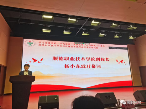 杨小东副校长致开幕词,他对长期关心、支持我校思政工作兄弟院校和专家评委表示诚挚的感谢,对各位专家和老师们的到来表示热烈的欢迎,并对马克思主义学院近年来在思政课教学方面取得的优异成绩予以充分肯定。