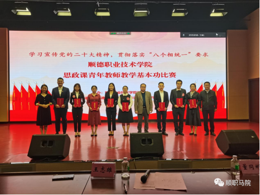为深入学习宣传党的二十大精神,贯彻落实“八个相统一”要求,发挥思政课铸魂育人主渠道作用,强化思政课师资队伍建设,12月10日上午,由学校教务处主办、马克思主义学院承办的首届思政课青年教师教学基本功比赛在六号报告厅顺利举行。学校党委委员、副校长杨小东教授和教务处处长肖冰教授出席活动,广东工程职业技术学院党委副书记方燕教授、番禺职业技术学院马克思主义学院院长曹群教授、佛山职业技术学院马克思主义学院院长陈艳教授担任评委专家,马克思主义学院全体教师参与了现场观摩交流。