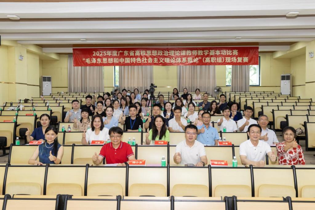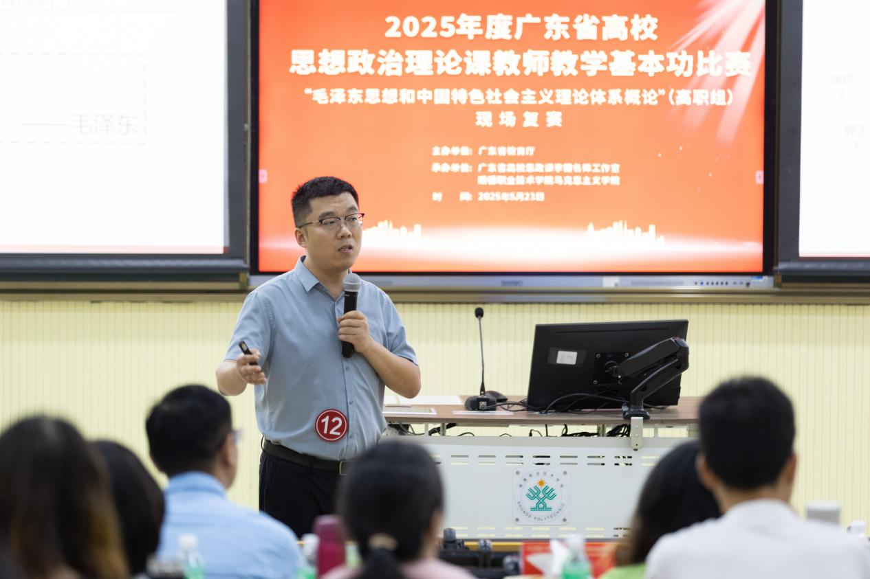 2025年5月23日,广东省高校思政课教师教学基本功比赛“毛泽东思想和中国特色社会主义理论体系概论”(以下简称“毛概”)课(高职组)现场复赛在顺德职业技术学院成功举办。我校党委委员、副校长杨小东和教务处魏占国教授出席活动,来自全省10余所高职院校的14位选手参加了比赛,10余位高职院校马克思主义学院负责人和50余位思政课教师参与了观摩交流。杨小东副校长在致辞中代表学校对长期关心、支持我校思政工作的省教育厅思宣处、专家评委和兄弟院校表示诚挚的感谢,对各位领导、专家和老师们的到来表示热烈的欢迎,对入围复赛的选手表示衷心的祝贺。