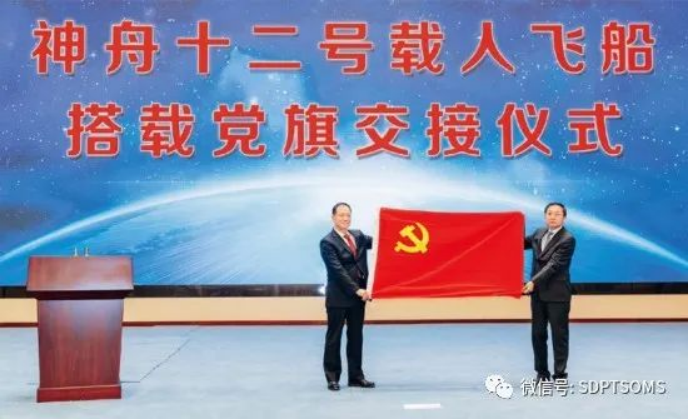 2021年11月4日,神舟十二号载人飞船搭载党旗交接仪式在中国共产党历史展览馆红色大厅举行。新华社记者 才扬/摄