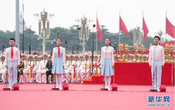 7月1日上午,庆祝中国共产党成立100周年大会在北京天安门广场隆重举行。这是共青团员和少先队员代表集体致献词。新华社记者 殷博古 摄